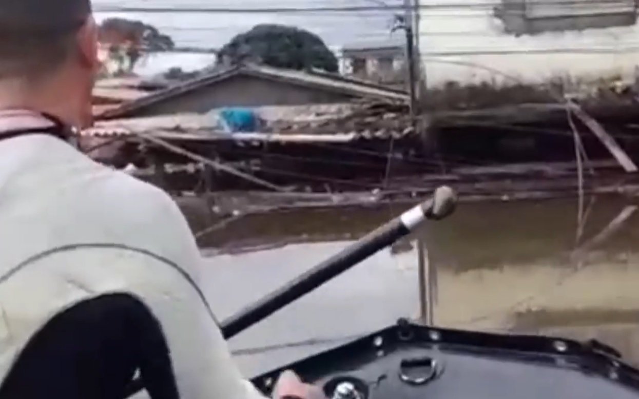 No bairro Sarandi, zona norte de Porto Alegre, a moradora Anita Carpes registrou a situação de casas inundadas através de um vídeo gravado enquanto acessava a região de barco. Com a água atingindo dois metros em diversos pontos, os moradores estão preocupados com a condição de suas residências e aguardam uma operação do Exército para avaliar os danos causados pela enchente.